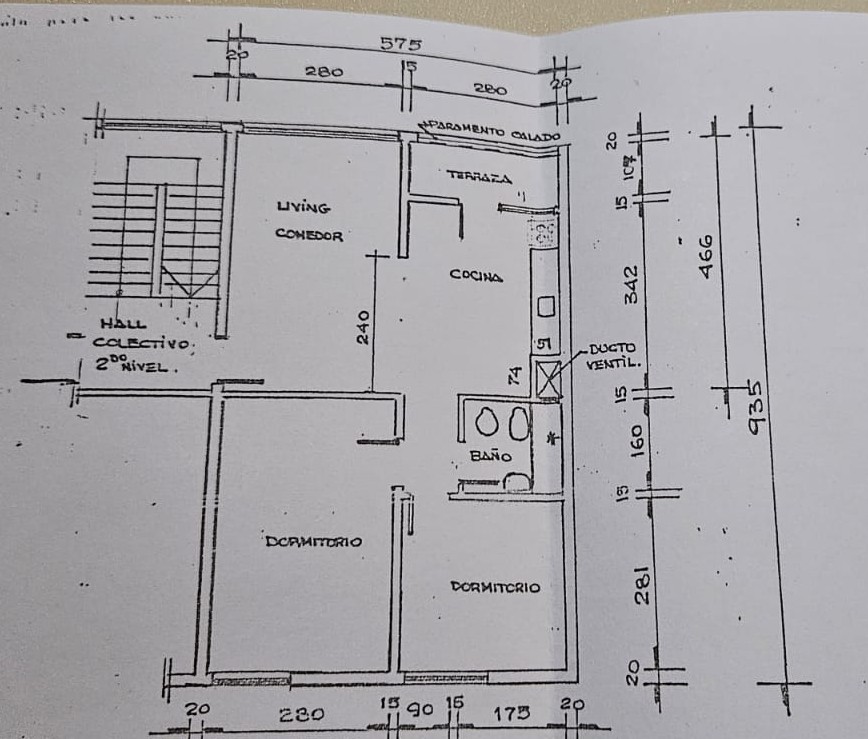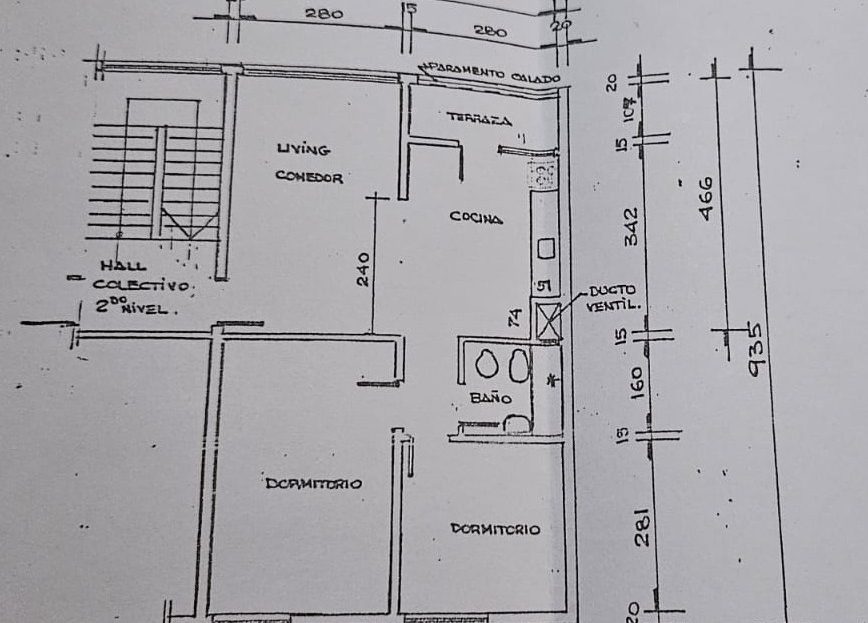 Al frente, 55 m2 edificados, living comedor, cocina con office, terraza lavadero, 2 dormitorios, baño.